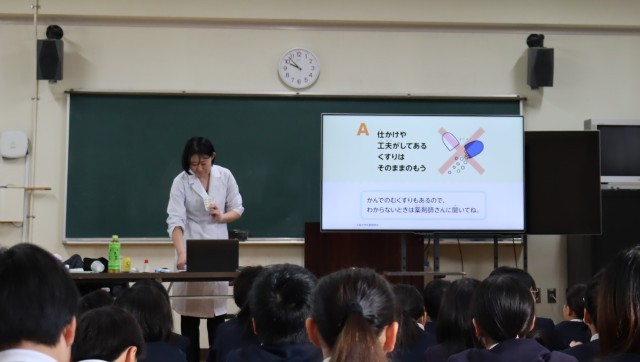 薬剤師の仕事や、薬の形状の種類、正しい薬の使い方、薬物乱用の危険性についても教えてもらいました。