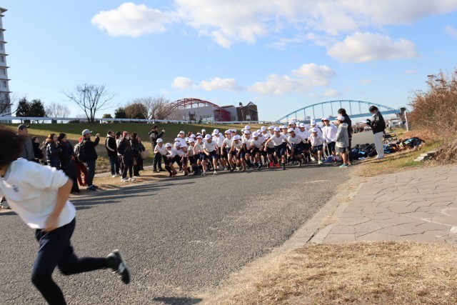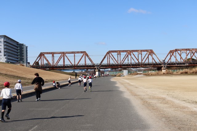 今日は1年生から6年生まで淀川の河川敷でマラソン大会をしました。