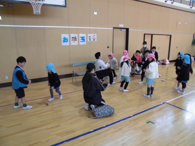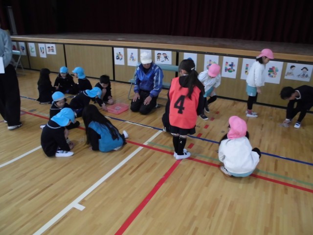 遊び方を1年生がやさしく教えてあげたり、逆に保育園児さんの方が上手だった場合もあったりで、1年生も驚いていました。