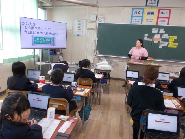 また、咀嚼ガムを使って、自分の「かむ力」についても調べました。