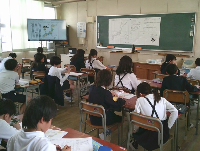日本は、4つの海に囲まれていることや、大阪はどのへんにあるのかを学習しました。