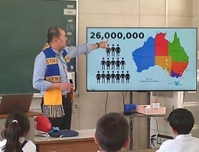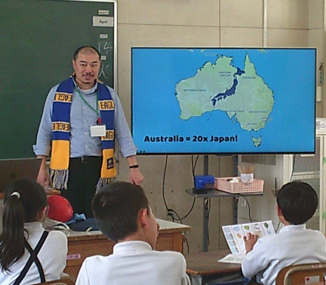 4年2組は「外国語活動」で、リン先生の出身の「オーストラリア」について学習していました。