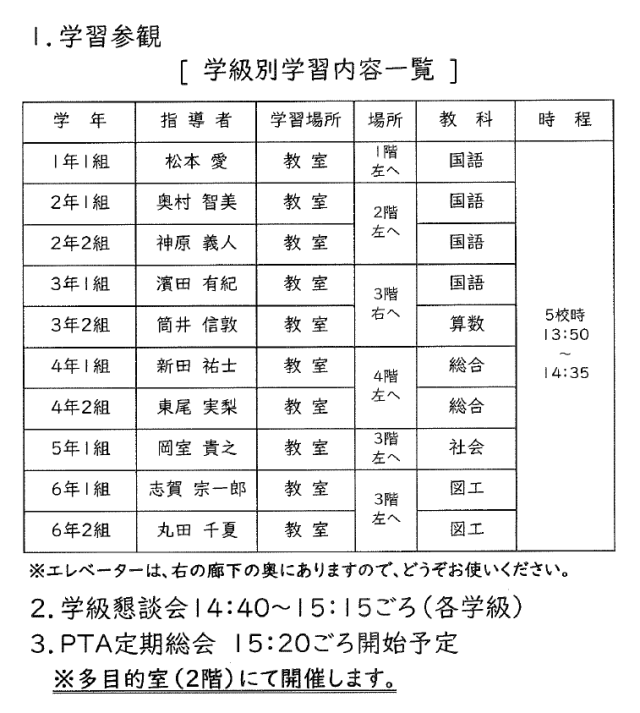 学習参観・懇談会・PTA総会のお知らせ