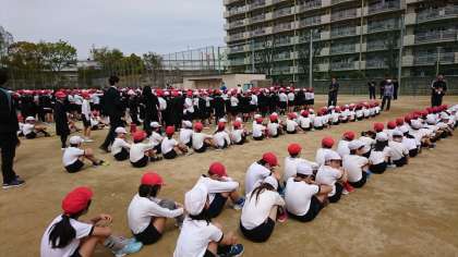 避難後、都島消防署の方に講評をしていただきました。「静かに避難できて素晴らしい。いつ起こるかわからない火災に向けて、常日頃から今回の訓練で実践したような心構えを持っておくことが大切です。」というお話をしていただきました。