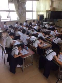 子どもたちは、姿勢良く、黙々と学習に取り組んでいます。