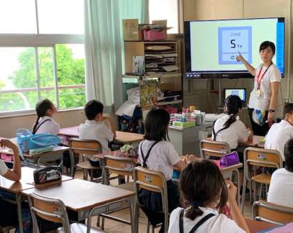 水曜日、金曜日の朝は、英語モジュール学習"English Time"の時間です。英語に触れるための短時間の学習で、主に授業用パソコン内の教材を使って学習しています。
