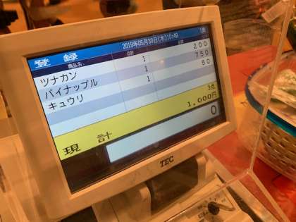 買い物コーナーでは、選んだ商品のバーコードをレジで読み取ります。レシートまで発行される本格仕様です。