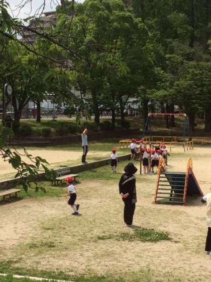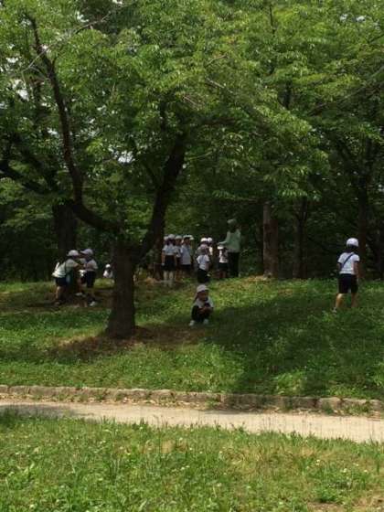 今日は、昨日行かなかった1年生の学級が公園たんけんに行きました。