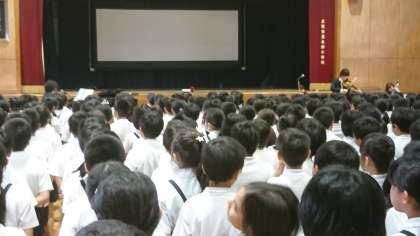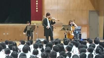 クラシックデュオ「スギテツ」の皆さん、およびバイオリン・ビオラ・チェロ奏者の皆さんを学校にお招きして、芸術鑑賞会を開催しました。