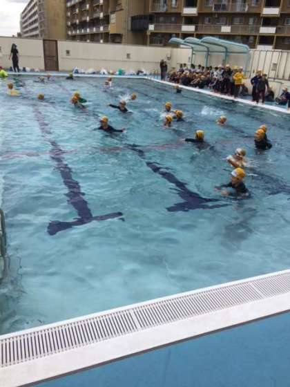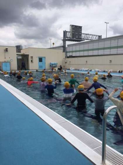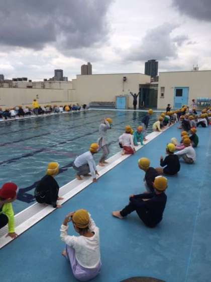 いつもと違う水泳の時間に子どもたちも大興奮でしたが、万が一、水難事故にあってしまった時の正しい対応をしっかりと身につけるため真剣に取り組んでいました。