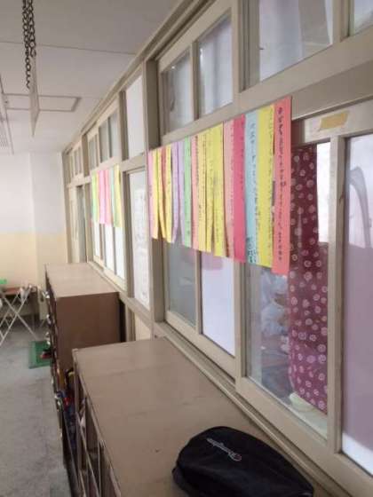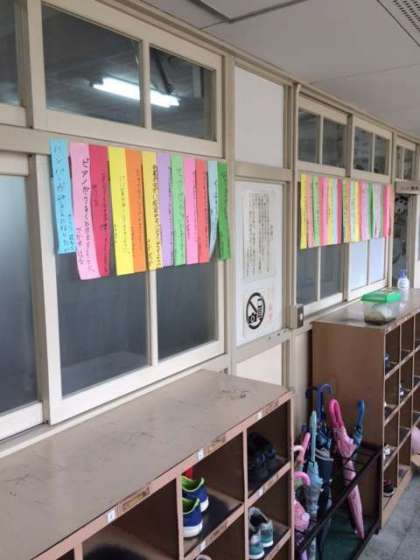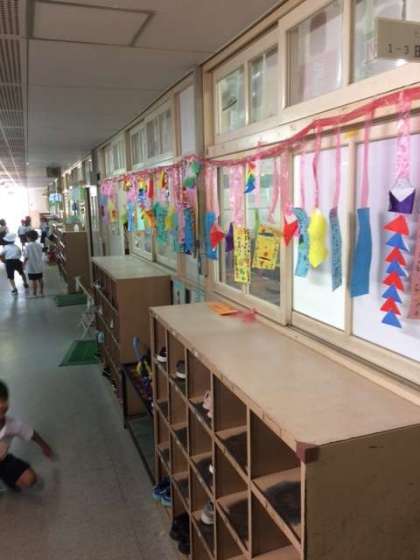 一年生と二年生の教室外には、七夕の短冊に願いが書かれて、飾られていました。