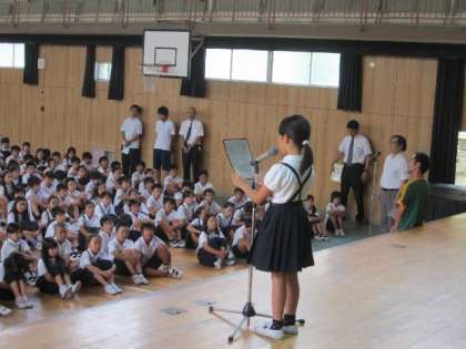 また、各学年の代表の児童が夏休みの目標や夏休みの予定について発表しました。