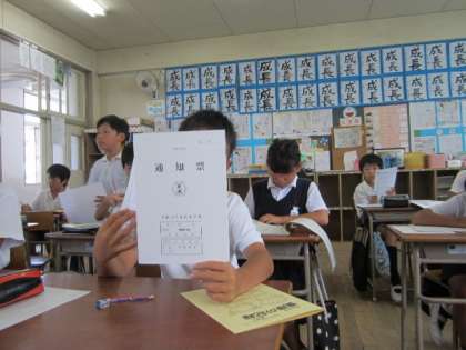また、通知票がひとりひとりの子どもに手わたされ、子どもたちはくいいるように通知票を見つめていました。