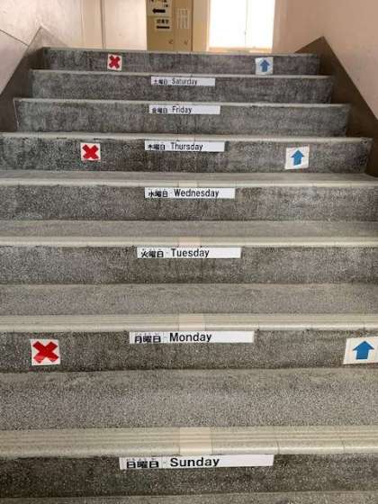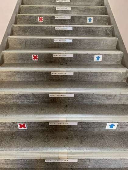 子どもたちも先生も、自然と声に出して読みながら、階段を登っていきます。