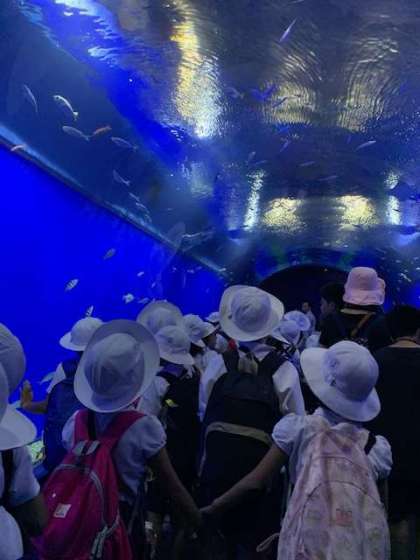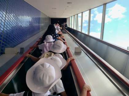 8階まで一気に上がるエスカレーターの長さに感動する子どもも・・・