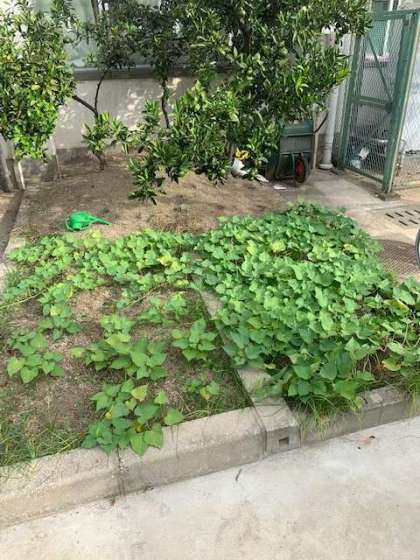 学習園では、さつまいもとみかんが立派に育ってきています。みかんはまだまだ緑色ですが、中にはほんのりオレンジ色をしているものも、あります。秋が近づいているのを感じます。