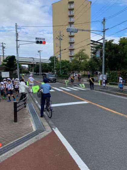 今朝は、友渕連合町会の方々が子どもたちの安全見守りのために各ポイントに立っていただきました。
