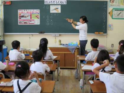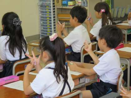 1年生が食育教育の一環として「正しい箸の持ち方」の学習をしました。