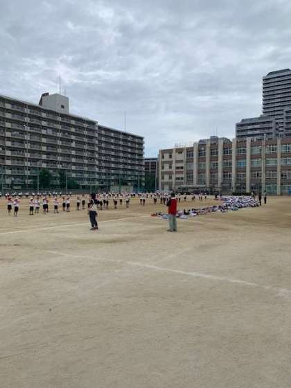 2時間目に、分校から本校に行き、2年生と1年生がお互いに団体演技を見せあいました。