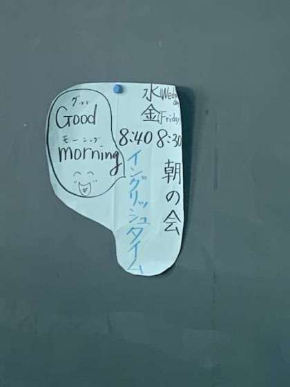 継続は力なり、次は金曜日の朝です。毎週水曜日と金曜日の朝の10分間だけですが、ちりも積もれば山となるです。英語が子どもたちにとって、着実に身近なものとなってきています。