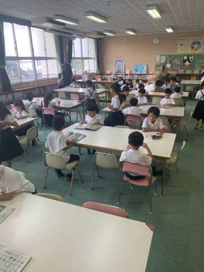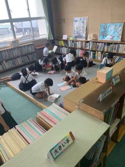 水曜日と金曜日の昼休みに、「よむとも」さんに来ていただき、図書館開放を行なっています。