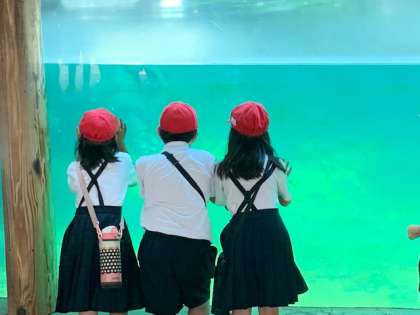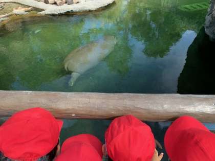 いつもはあまり動かないカバですが、食事時なのかよく動いていました。向こうとこちらを行ったり来たり。子どもたちは目の前で見るカバの大きさに驚いていました。