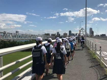 帰校中です。淀川、大川と渡り、学校まで歩きます。