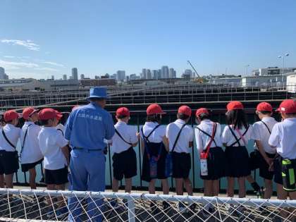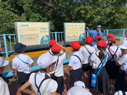1組、2組は、まず施設を見学します。水がきれいになっていく様子が、段階的にわかります。