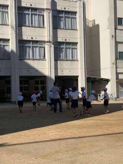 涼しい中で朝から子どもたちは、ドッジボールをしています。このような子どもたちの元気な姿を見るたびに、こちらも元気をもらいます。