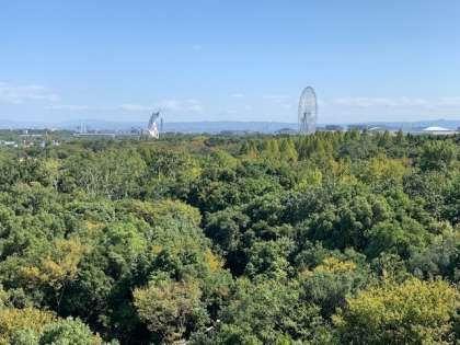 一番上からは、万博公園はもちろん、北摂や生駒山地の山々まできれいに見渡すことができます。