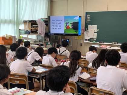 毎週水・金の朝は、英語のモジュール学習 English Timeの時間です。各学級で英語の短時間学習をしています。