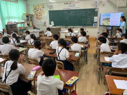 今日は3年のあるクラスが英語で1〜20までを数える練習をしていたので校長が飛び入り参加。子どもたちから、Do you like〜?と英語で質問を受けました。