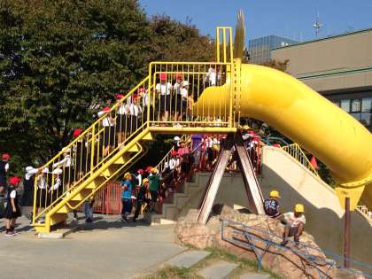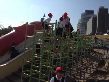 お弁当を食べた後、みんなで公園の遊具を使って楽しく遊びました。