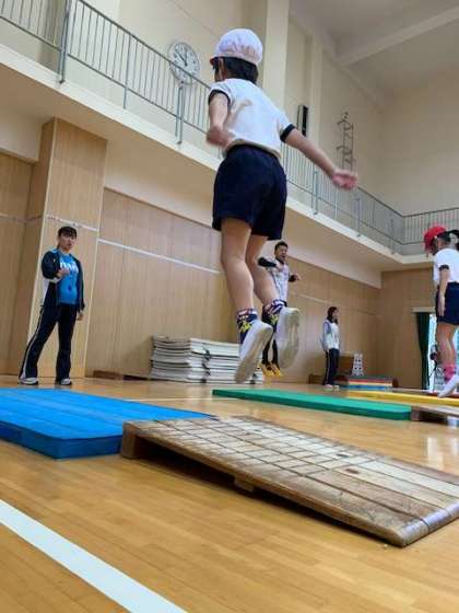 1年生は、踏み切り板を使ったジャンプの学習をしました。