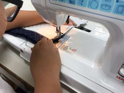 仮縫いをし、はじめと終わりに返し縫も行いながら、慎重にミシンの針を進めます。