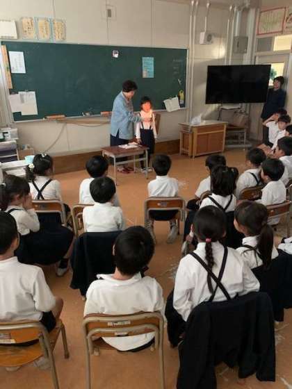 今日は、二時間目に1年生、三時間目には、2年生のおはなし会がありました。