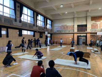 11月5日(火)の放課後に、職員の体育実技研修会がありました。ASOBILITYの山村さんに来ていただき、マットと跳び箱について教えていただきました。一つひとつのやり方を細かくご指導いただき、充実した研修会になりました。