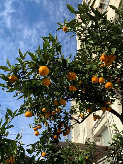 分校の学習園や花壇には、バラや花梨、みかんが育っています。