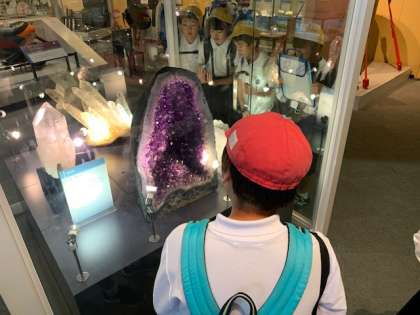 大きなアメジストの原石や水晶は、子どもたちの関心を集めていました。