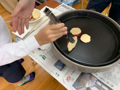 ホットプレートで収穫したサツマイモを焼きましたが、焼き上がるまでの間にサツマイモクイズをしました。