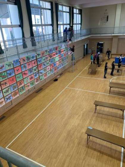 今日と明日は、作品展の準備の日と設定をしています。放課後に、教職員が総出で子どもたちの作品が飾れるように、作業しています。