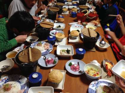 海洋楼の食堂で、みんなとワイワイと楽しく食事をしました。