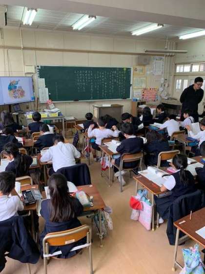 子どもたちの教科書の挿絵や文が前に映し出されると、教科書のどの部分にどうすると言った指示が分かりやすくなります。