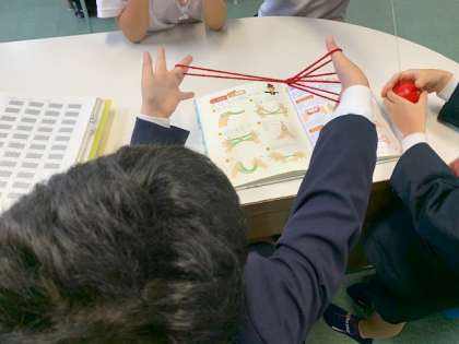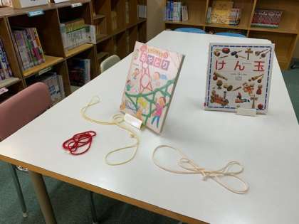 あやとりや、けん玉などの遊びを紹介するコーナーを設け、実際に遊べるようにあやとりやけん玉も用意してくださいました。