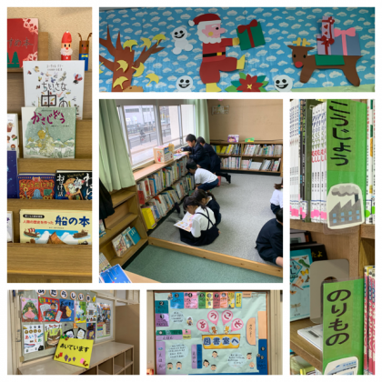 図書館は、読書ボランティアの「よむとも」さんが掲示物をたくさん作ってくださっています。子どもたちにとって、ホッと一息つける空間になっています。