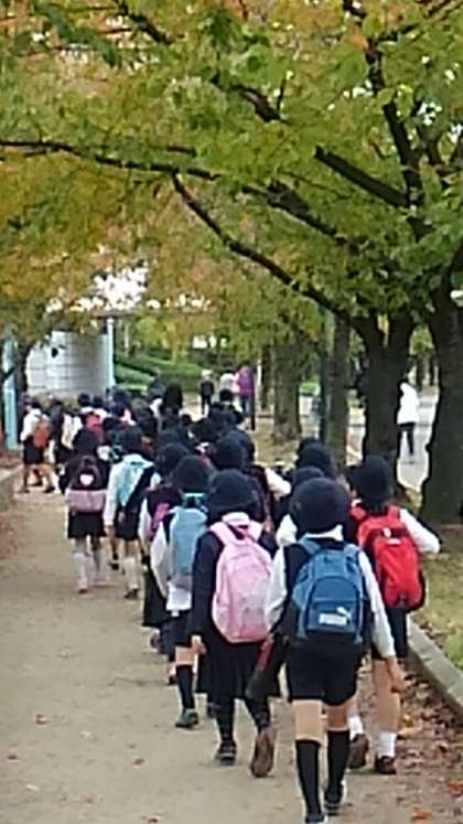 今日の遠足の目的地・海遊館に向け、3年生が出発しました。