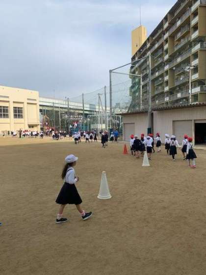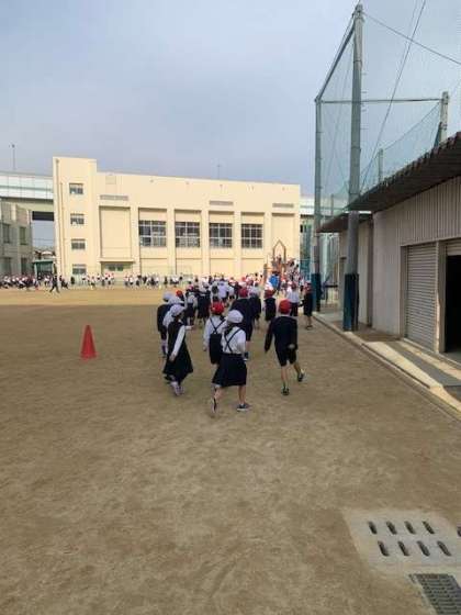 今日の15分休みには1年生の4クラスが走りしました。見守る2年生も手拍子で応援です。
