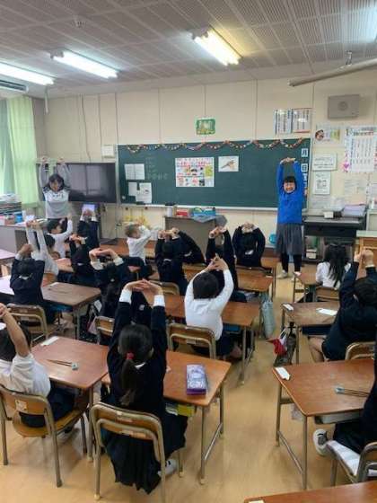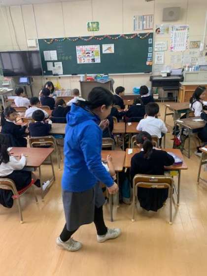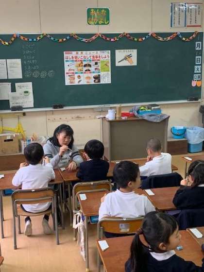 今日は、栄養教諭の先生が一年生に正しいお箸の使い方の学習です。