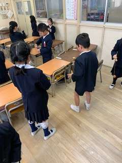 おてだまを上に投げて、つかむという動作が難しい子もいて、必死に練習していました。