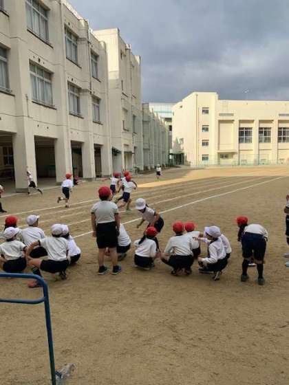 5月に1度タイムを計った50メートル走のタイムが、この1年間でどれだけ速くなったのかを知るために、2度目の測定を行なっています。